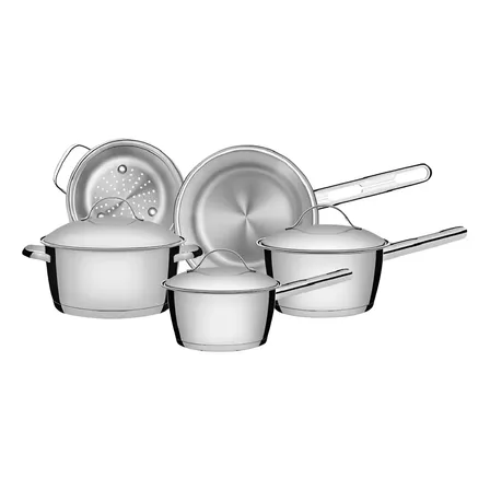 Jogo De Panelas Tramontina Allegra Em Aço Inox Com Fundo Triplo 5 Peças