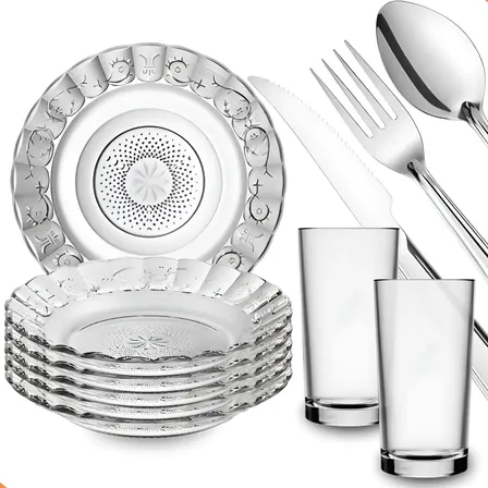 Aparelho De Jantar 30 Peças - Pratos + Copos + Talheres Inox
