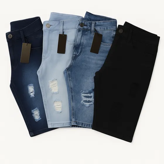 Kit 3 Bermuda Masculina Rasgada Destroyed Desfiada D/fabrica