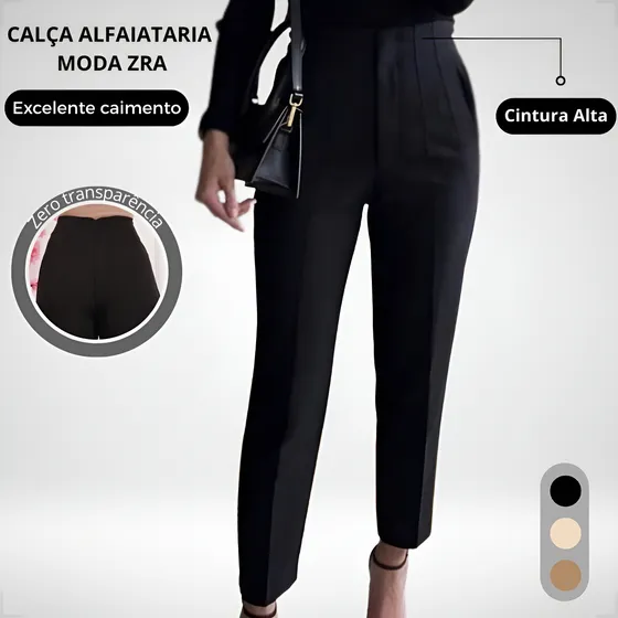 Calça Alfaiataria Feminina Tendência Cintura Alta Moda Zra