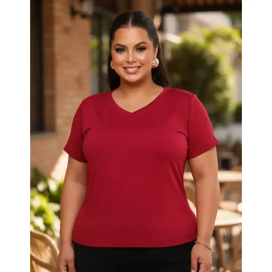 Blusa Feminina Plus Size Gola V Básica Viscolycra