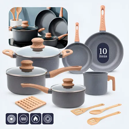 Jogo De Panelas Induçao Antiaderente Cerâmica 10 Peças Ppg Pfoa Free Grafite