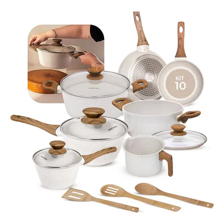 Jogo De Panelas Antiaderente Cerâmica Mimo Style 10 Peças Mármore
