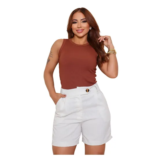 Short Social Linho Casual Moda Feminina Cintura Alta Verão