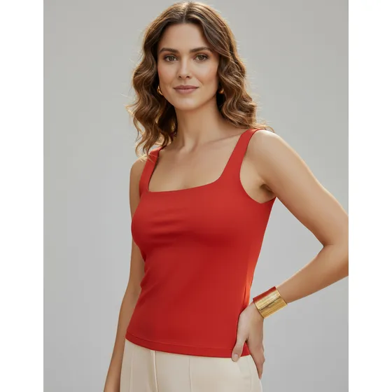 Decote Quadrado Blusinha Regata Feminina Suplex Moda Verão