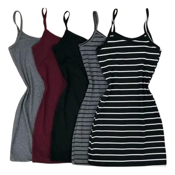 Kit 5 Vestido Tubinho Canelado Alça Fina Festa Ano Novo Moda