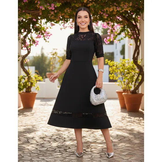 Vestido Midi Moda Modesta Evangélica Conforto Elegante Luxo
