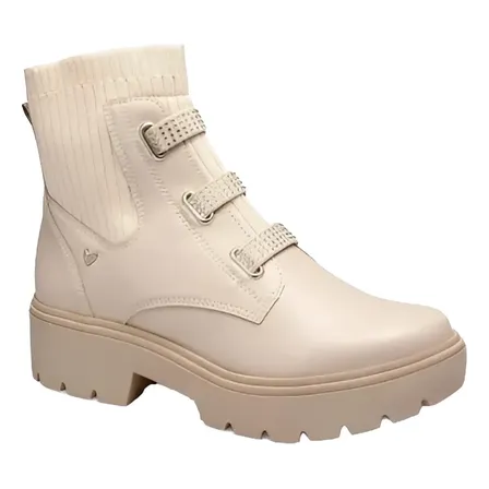 Bota Coturno Feminina Mississipi Sola Tratorada Confortável Marfim Geométrico 37 Br