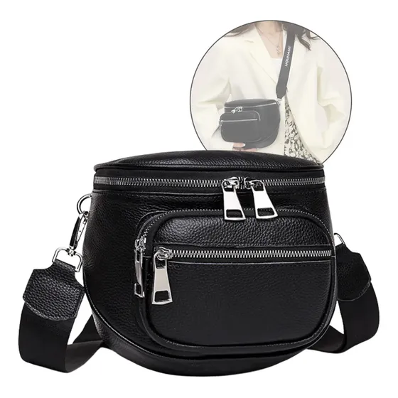 Bolsa Feminina Transversal Pochete Couro Sintético Preto Alça Ajustável