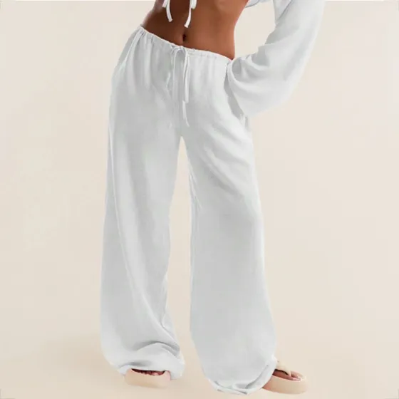 Calça Saída De Praia Com Amarração Na Frente E Efeito Linho