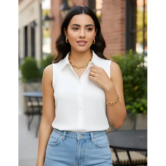 Blusa Feminina Camisa Regata Listrada E Lisa Elegante