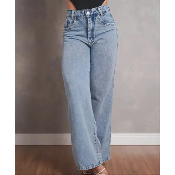 Calça Jeans Wide Leg Cintura Alta 100% Algodão