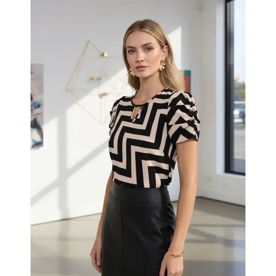 Blusa Feminina Manga Bufante Lateral Estampado Moda Estilosa