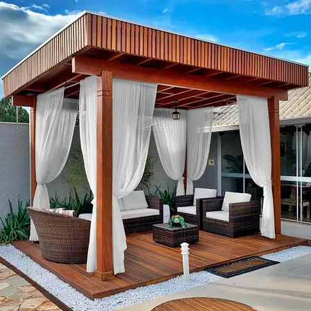 Cortina Pergolado Voil 4 Unidades 2mx2,8m Decoração Quiosque Branco