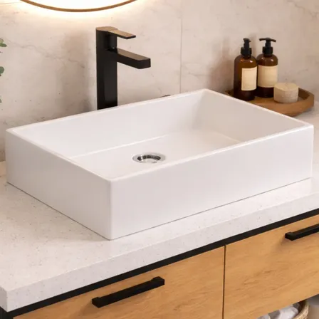 Cuba De Apoio Lavatório Pia Sobrepor Banheiro 40x28 Branca Branco - Retangular Acetinado