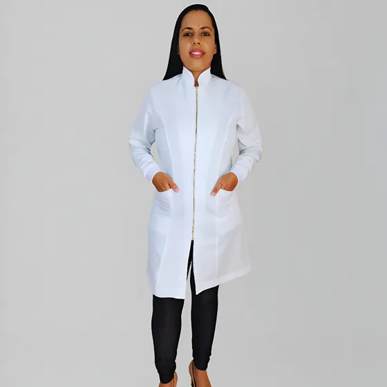 Jaleco Feminino De Gabardine Com Zíper E Punhos Na Manga