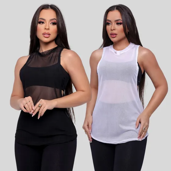 Kit 2 Regata Feminina Moda Academia Transparente Fitness