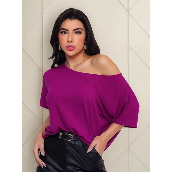 Camisa Ombro A Ombro Blusa Manga Curta Soltinha Gola Canoa
