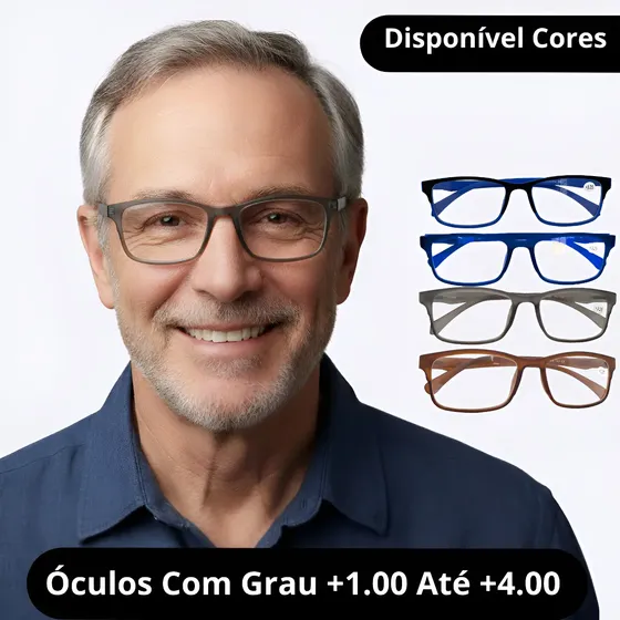 Óculos Grau Perto Leitura Clássico Emborrachado +1.0 A +4.0