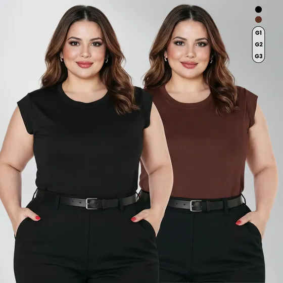 Kit 2 Blusa Muscle Tee Feminina Plus Size Versátil G1 G2 G3