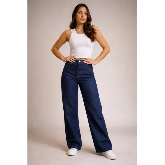 Calça Jeans Wide Leg Feminina Cintura Alta Sem Lycra Stillge