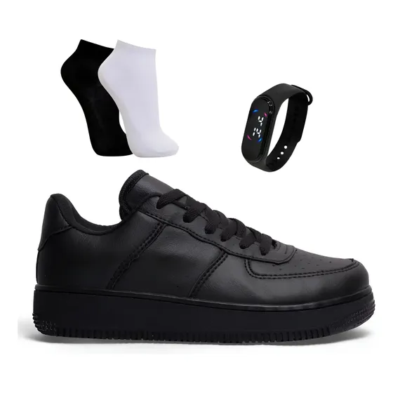 Kit Tênis Casual Clair Confortável Unissex + Relógio + Meia