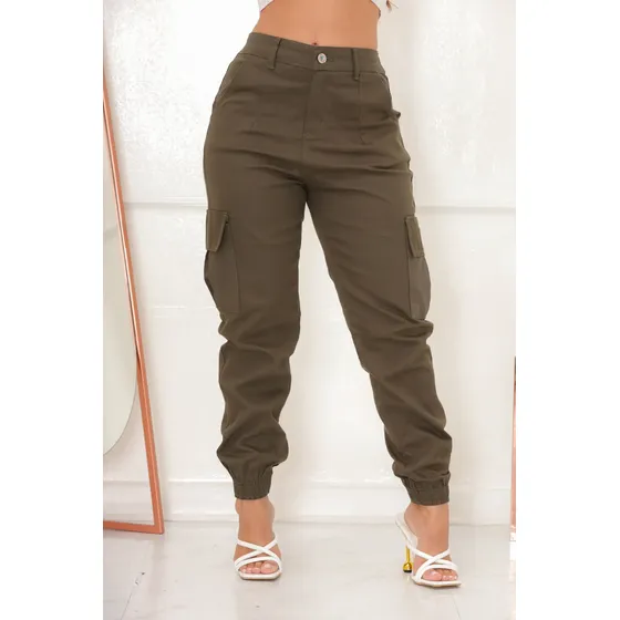 Calça Cargo Jogger Jeans Feminina Cintura Alta Com Lycra