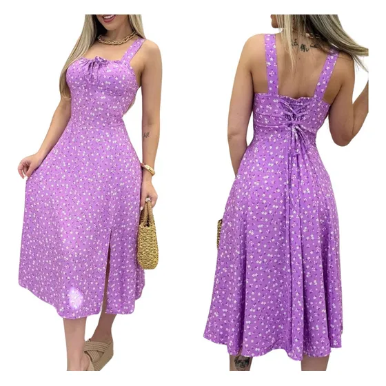 Vestido Midi Com Fenda Lateral Moda Verão 3.0 Girls Alça