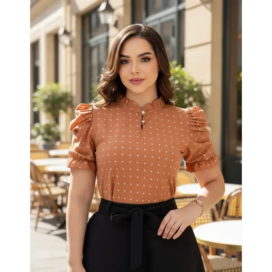 Blusa Social Feminina Manga Curta Moda Evangélica Crepinho