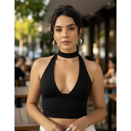 Cropped Top Amarraçao No Pescoço Poliamida Blogueira Balada